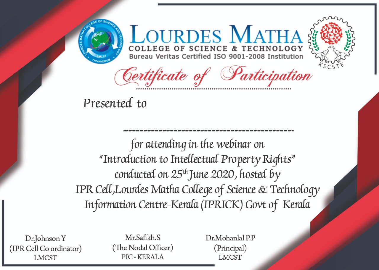 ipr cell certificate – Lourdes Matha College of Science and Technology ...